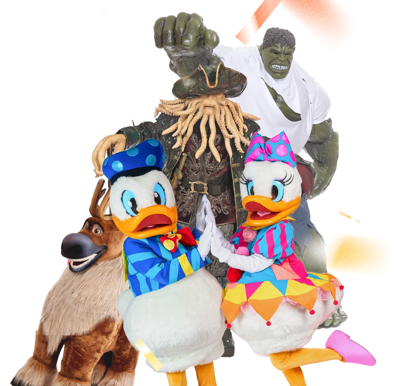 We offer high-quality, realistic costumes that look as vibrant on stage as they do in photos. Our entertainers are professionals who know how to hold children's attention and create a great atmosphere without creating unnecessary chaos.Characters